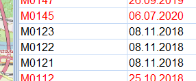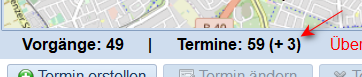 In der Tabelle rechts neben der Karte werden solche Vorgänge/Wiedervorlagen OHNE Farbkennung angezeigt.