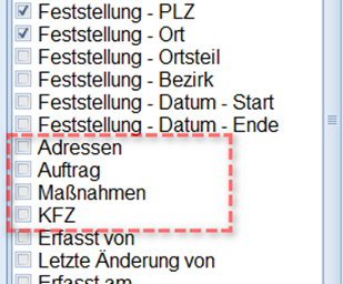 Öffnen Sie die “Felderwahl“ pro Filter(!) und konfigurieren NUR die notwendigen Spalten. Hier ein paar Spalten, die Sie nur bei Bedarf einblenden, bzw. ausblenden sollten, wenn diese nicht benötigt werden.