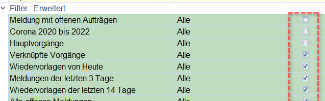 Startseite - Erweiterte “Filter“ (Kundenspezifische Filter) >>> abhängig von Berechtigungen