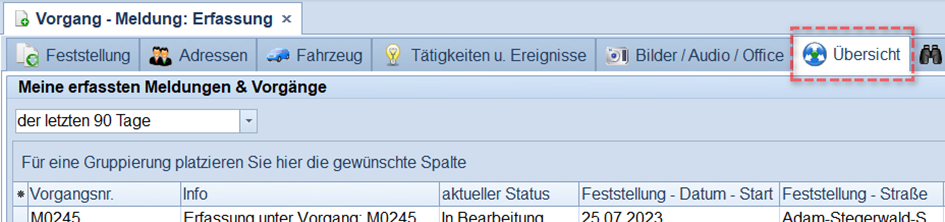 Meine erfassten Meldungen und Vorgänge