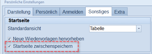Falls noch nicht geschehen, Aktivieren Sie die Option “Startseite zwischenspeichern“ in Ihren persönlichen Einstellungen.