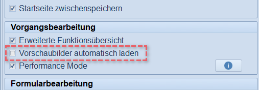 Mit Update Version 2.23.7 werden deshalb die Vorschaubilder per Default nicht mehr automatisch geladen. Stattdessen wird an dieser Stelle ein Link “Vorschaubilder laden, hier klicken“ angezeigt.