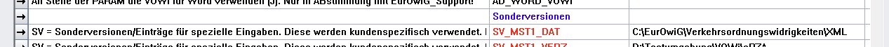 Dazu muss im EurOwiG Hauptmodul unter „Administration” → „Bearbeitung INI-Einstellungen” unter der Hauptgruppe „Sonderversionen” der Schlüssel „SV_MST1_DAT“ eingetragen werden.