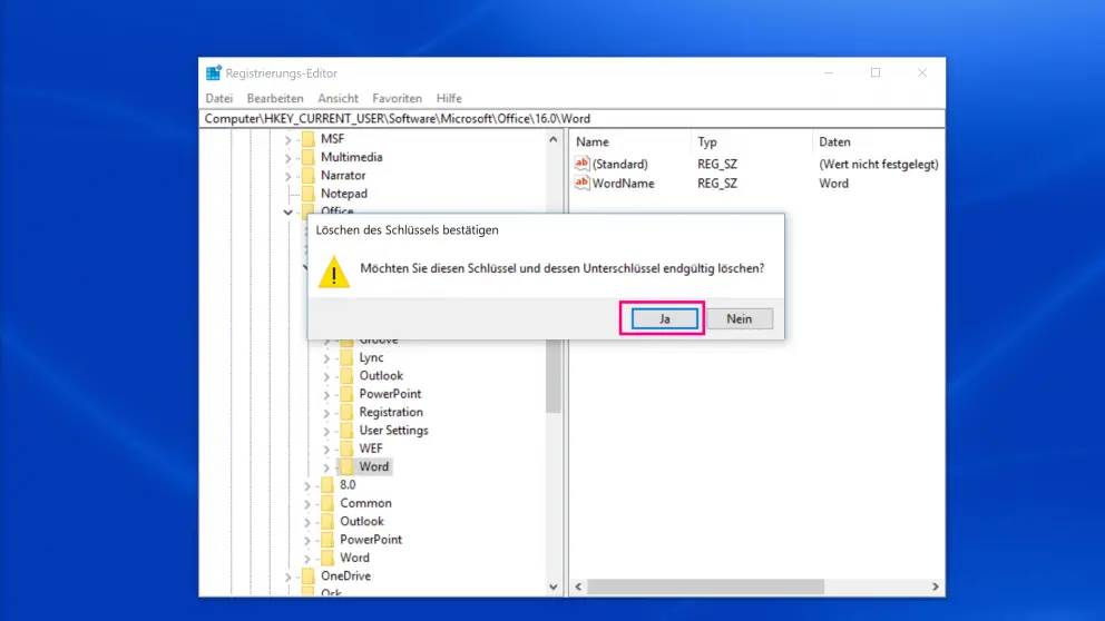 Kurzanleitung Word-Einstellungen in der Registry zurücksetzen